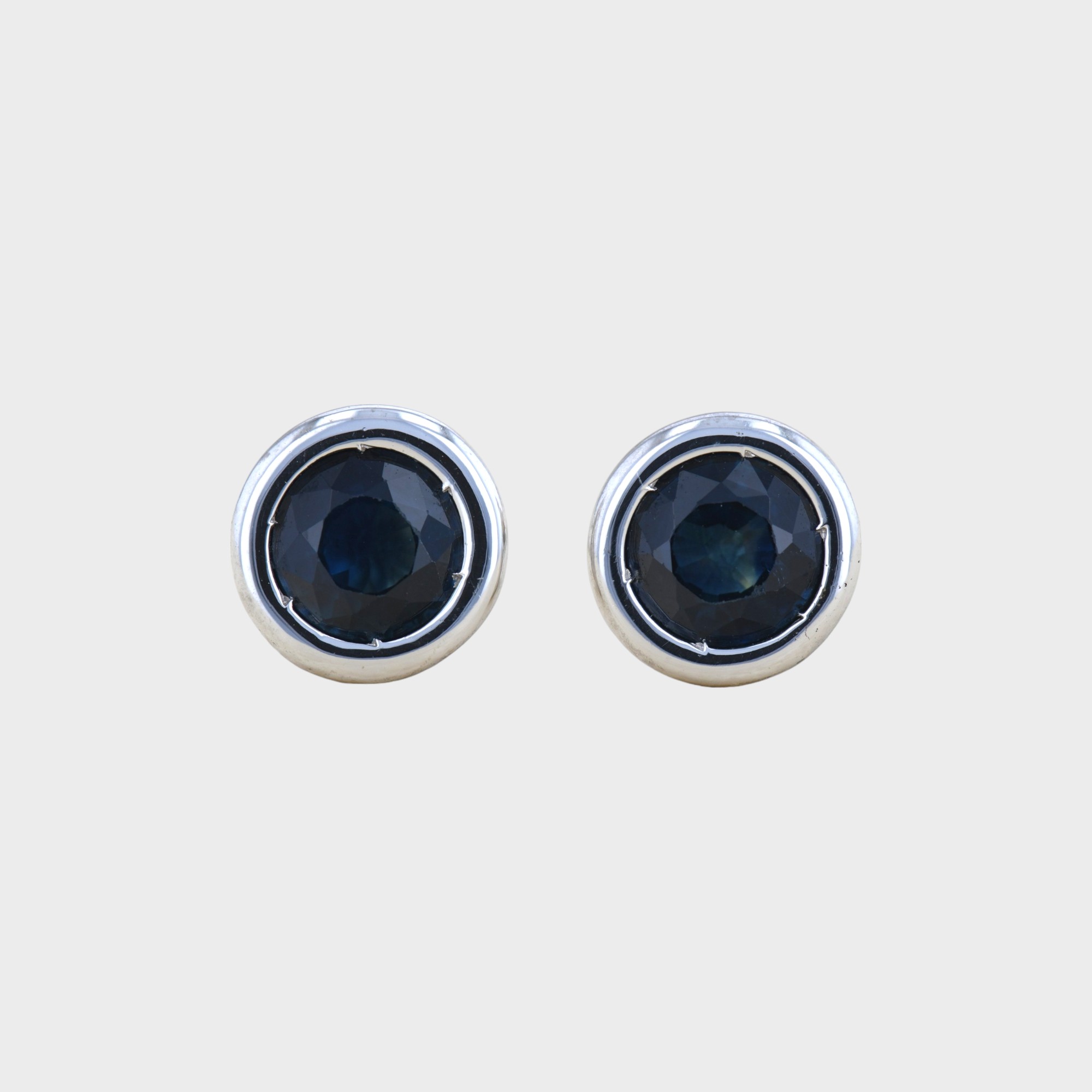Cercei cu safire din aur alb 18k, 2,51 grame, safire ~ 1,61 ct.(2 bucati), taietura briliant, diametru ~ 0,8 cm.