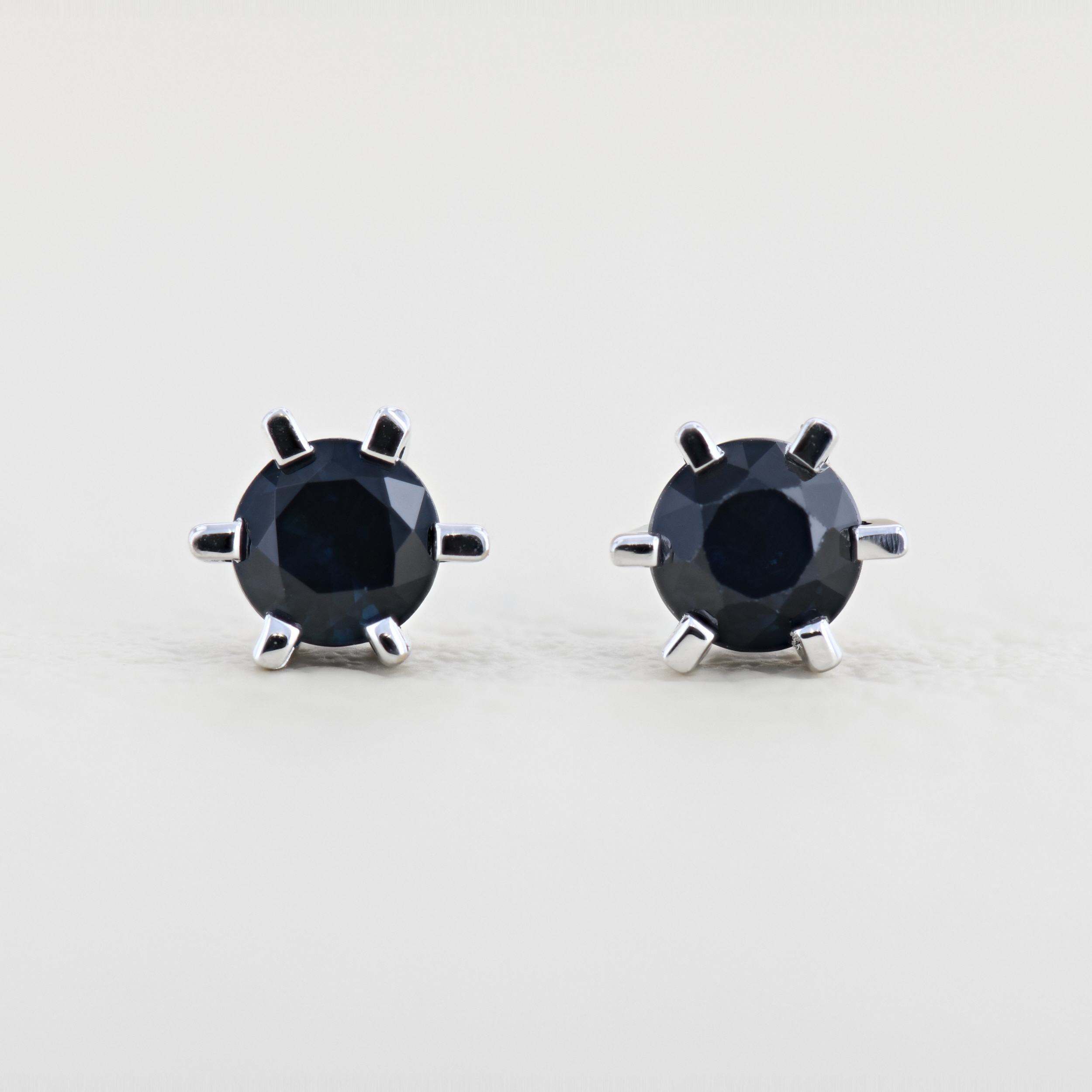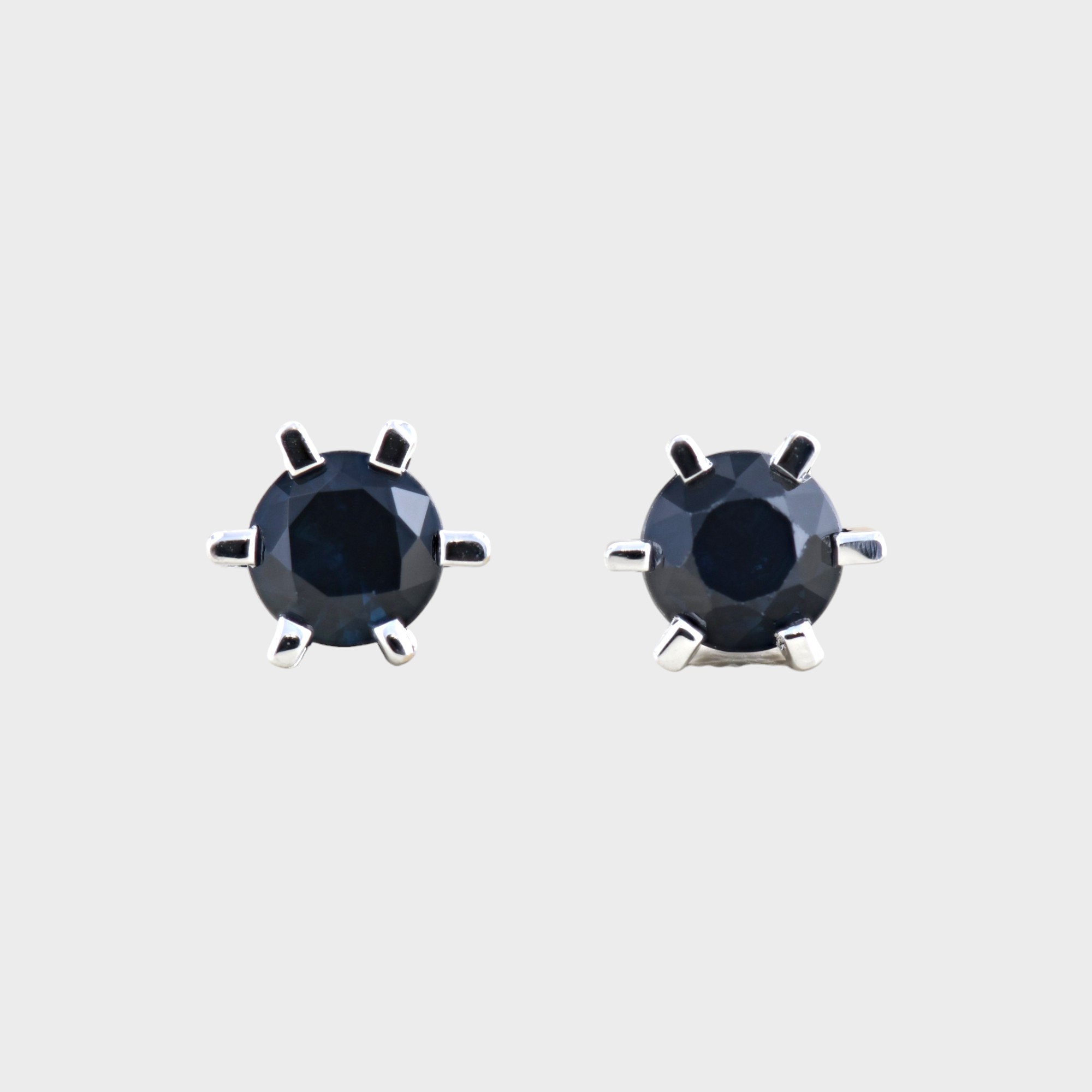 Cercei cu safire din aur alb 18k, 2,32 grame, safire ~ 1,38 ct.(2 bucati), taietura briliant, diametru ~ 0,6 cm.