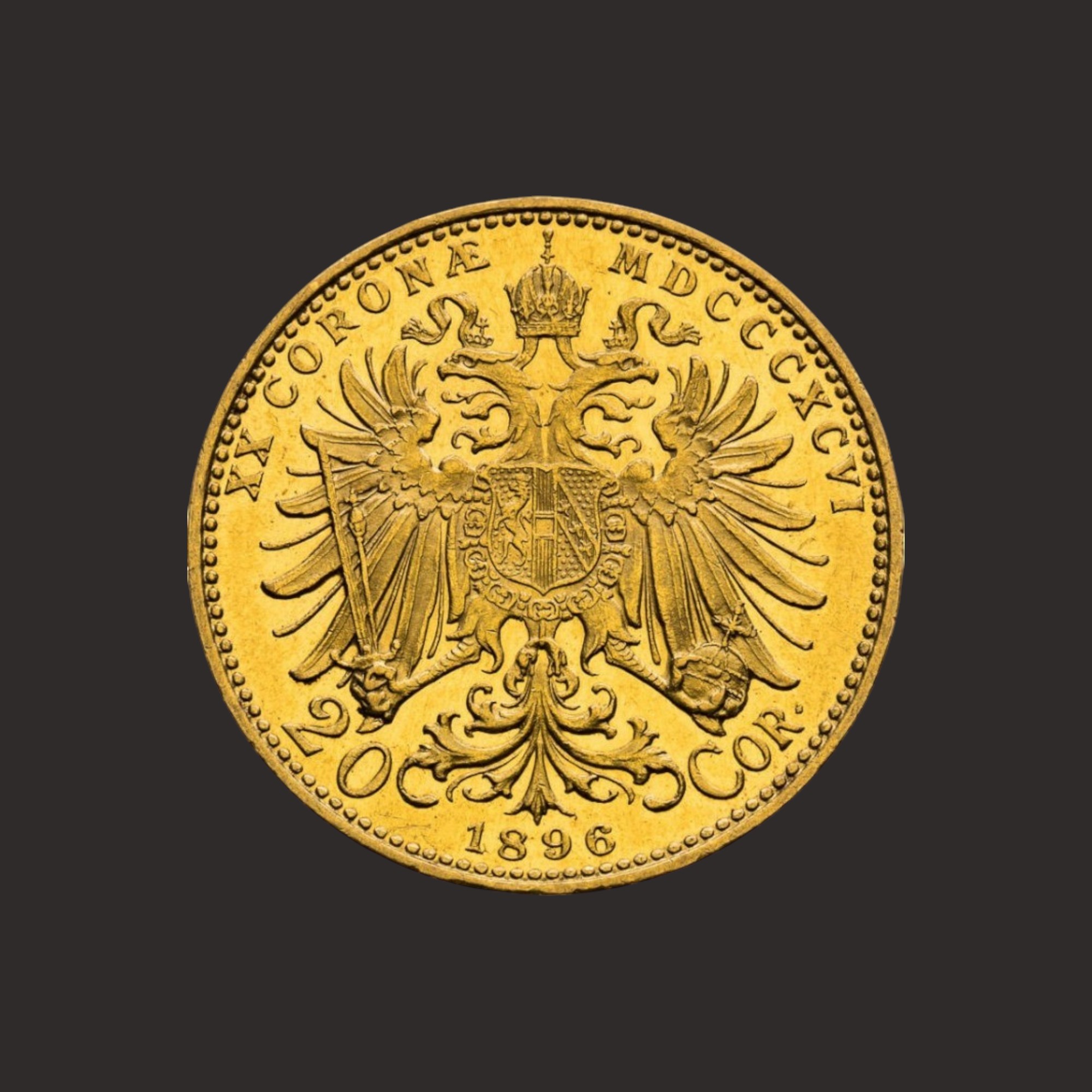 Moneda aur 20 coroane austriece Franc Iosif I(1893, 1896), aur cu puritate 900(21,6 carate), aproximativ 6,77 grame. TVA 0%.