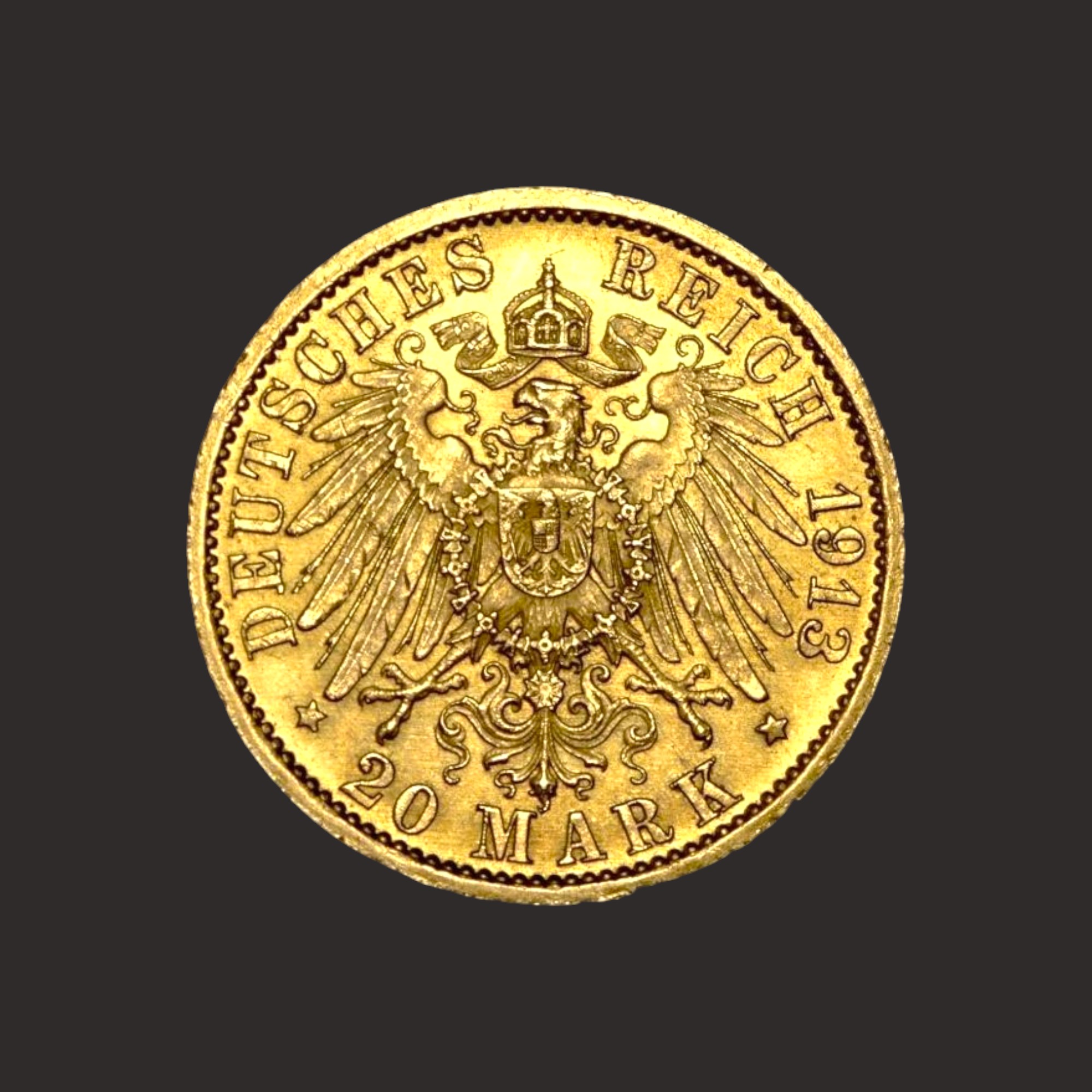 Moneda din aur emisa in Germania Imperiala care a jucat un rol important in revolutia industriala a Germaniei, facilitand comertul extern.